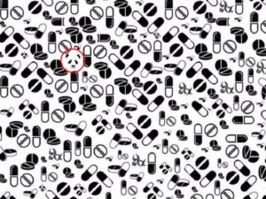 Следующая задачка может показаться вам еще сложнее. На изображении нарисовали разные таблетки, но попробуйте разглядеть здесь панду.